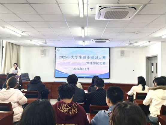 为培育学生生涯发展理念,树立正确的择业就业观念,提升学生综合素质和专业能力,11月24日,管理学院在双创中心408会议室举办2025年大学生职业生涯规划大赛管理学院初赛,外国语学院党委副书记魏薇、管理学院专职组织员王中颖、管理学院团委书记李春月、辅导员老师詹永吉、卢鑫作为评委出席会议,23、24、25级在校生积极参加。