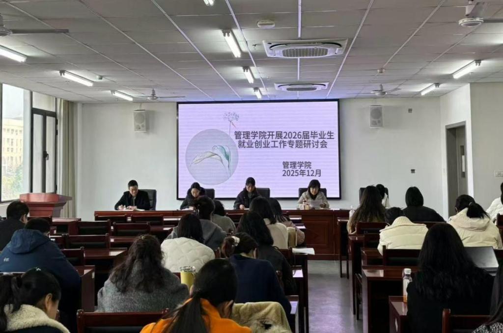 为深入贯彻国家和学校关于高校毕业生就业创业工作的决策部署,精准把握就业创业新形势,切实提升2026届毕业生就业创业质量,管理学院于12月12日在双创楼408会议室召开2026届毕业生就业创业工作专题研讨会。会议由院党委书记王艳平主持,学院领导班子、专兼职辅导员及专任教师参加此次会议。