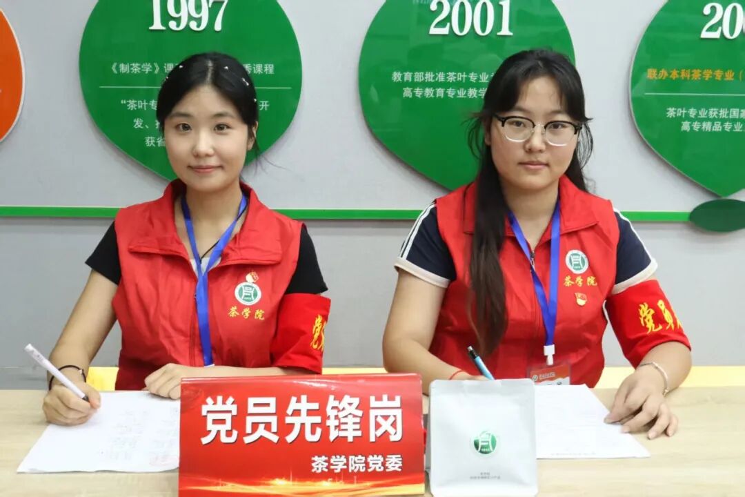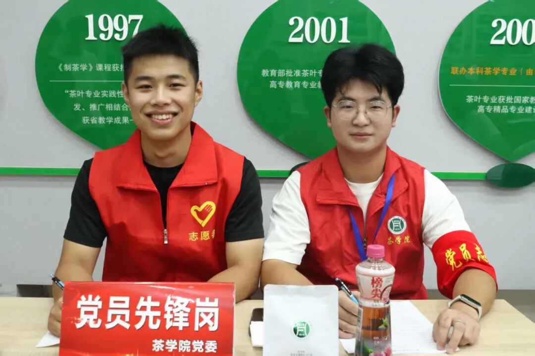 9月10日、11日,茶学院茶学学生第一党支部在迎新现场设立“党员先锋岗”,组织20余名党员志愿者开展志愿服务,以实际行动为2025级新生保驾护航。