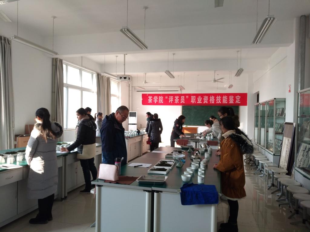 茶学院从2006年开始,面向在校茶学类专业学生开展国家职业资格“评茶员”“茶艺师”鉴定,2017年首次与信阳市人力资源与社会保障局联合开展国家职业资格“高级评茶员”鉴定。目前茶学院已成为河南省重要的国家职业资格评茶员、茶艺师理论、技能培训与鉴定基地。(茶学院 张洁 杨转)