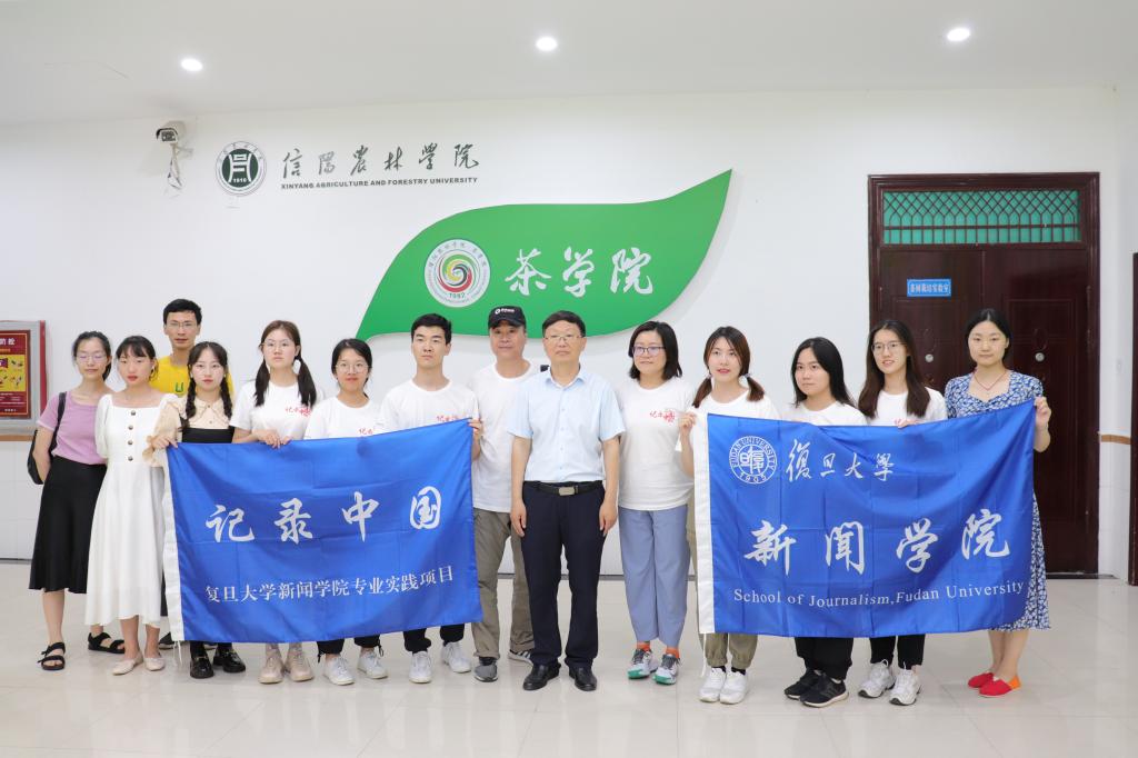 7月10日下午,我校茶学院院长郭桂义教授接受复旦大学新闻学院暑期社会实践活动“记录中国”专业实践项目组采访。项目组由复旦大学新闻学院谈建国老师和澎湃新闻记者刁凡超记者共同带队、6名同学组成,我校文学艺术学院2名老师及2名同学随行。本次采访主要为了解信阳毛尖茶的发展等情况。