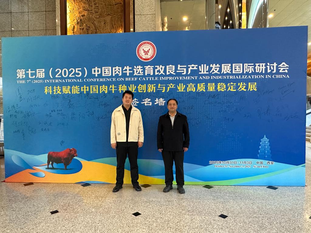 2025年10月31日至11月2日,第七届中国肉牛选育改良与产业发展国际研讨会在西安召开。本次会议主题为 “科技赋能中国肉牛种业创新与产业高质量稳定发展”,由西北农林科技大学与国家肉牛改良中心联合主办,吸引了来自中国等10多个国家的300余位专家学者和企业代表参会。我院梁成成博士、李军老师参加了本次会议。
