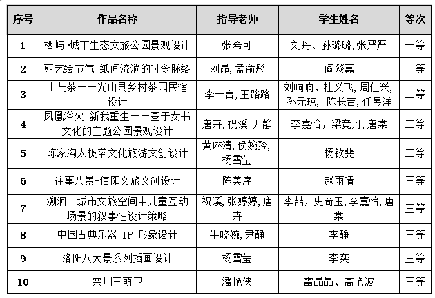 根据河南省文化和旅游厅、中共河南省委宣传部、中共河南省委网络安全和信息化委员会办公室和河南省教育厅联合印发的《关于举办 2025 河南省文化创意大赛的通知》( 豫文旅产业[2025]2号)要求,共选出2项校赛一等奖、3项校赛二等奖、5项校赛三等奖。现将大赛校赛拟获奖名单进行公示,以下排名不分先后: