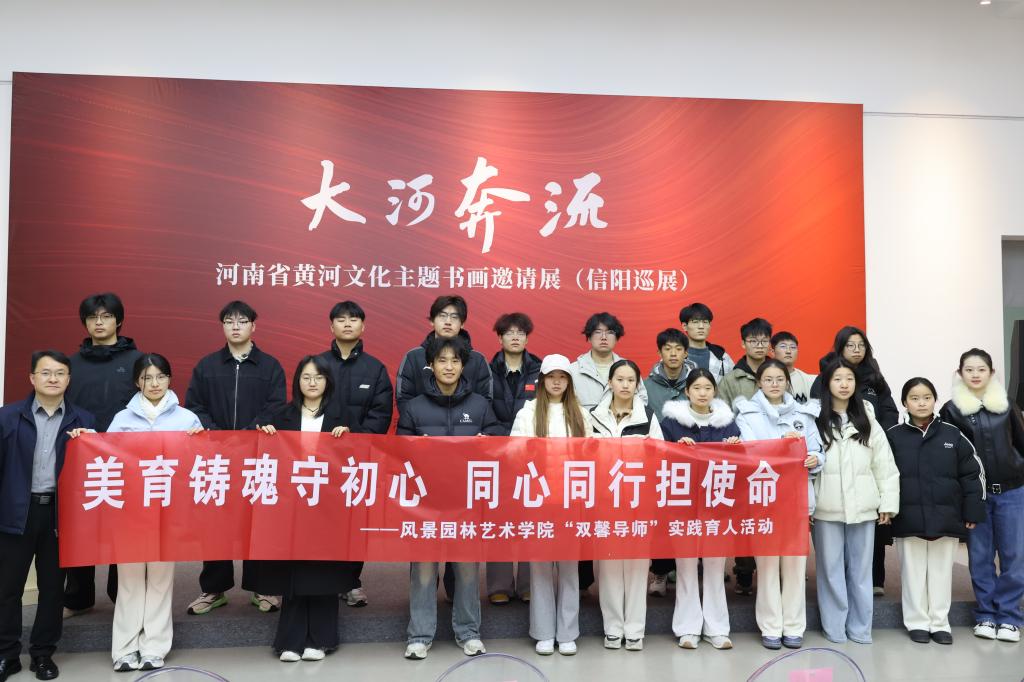 为深化“双馨导师”实践育人体系建设,推动美育与专业教育深度融合,12月19日,风景园林艺术学院参加“大河奔流”河南省黄河文化主题书画邀请展(信阳巡展)系列活动,组织师生代表二十余人,在副院长张志锋与侯泽涛老师的带领下,赴信阳市文学艺术院开展学习交流。