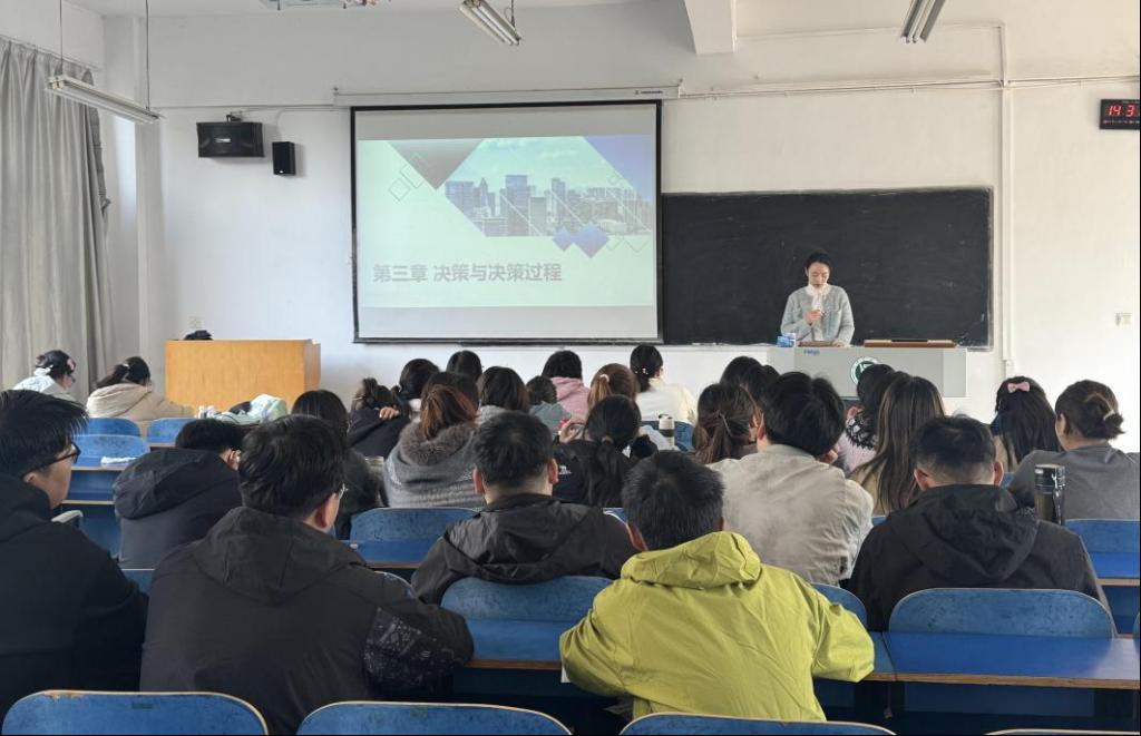 课堂上,阮晓莹以“决策与决策过程”为授课内容,凭借清晰的教学思路、生动的案例讲解,将抽象的管理学知识具象化。她结合市场营销专业特点,引入企业决策实例,引导学生思考决策在营销管理中的应用,充分调动了学生的学习积极性,课堂互动氛围热烈。