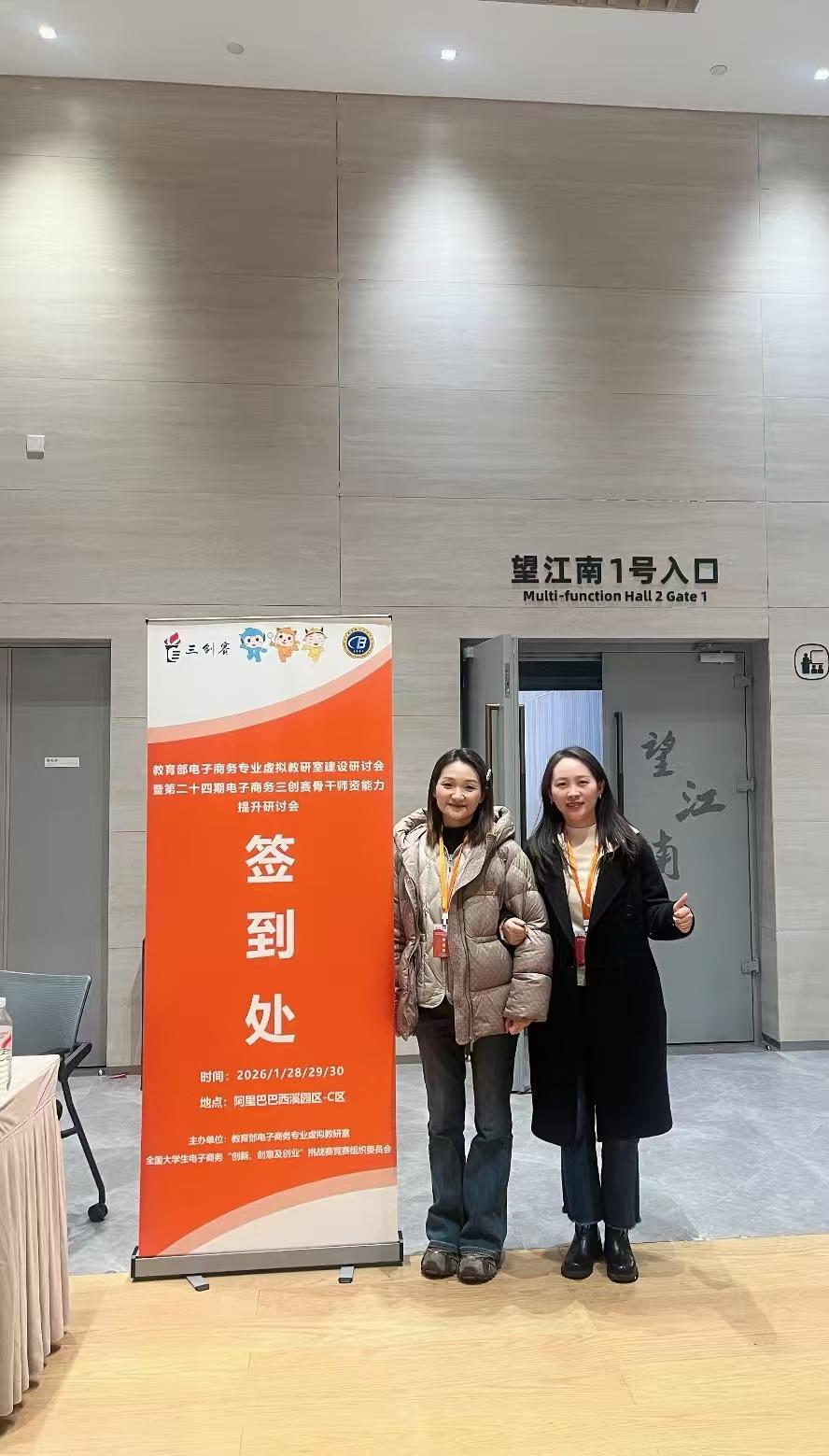 为深化电子商务专业教学改革,切实提升青年教师创新创业竞赛指导能力,1月28日,物流与电商学院袁俊、易善秋两位青年教师赴杭州阿里巴巴园区,参加电子商务三创赛骨干师资能力提升研讨会,为学院创新创业教育高质量发展蓄力赋能。