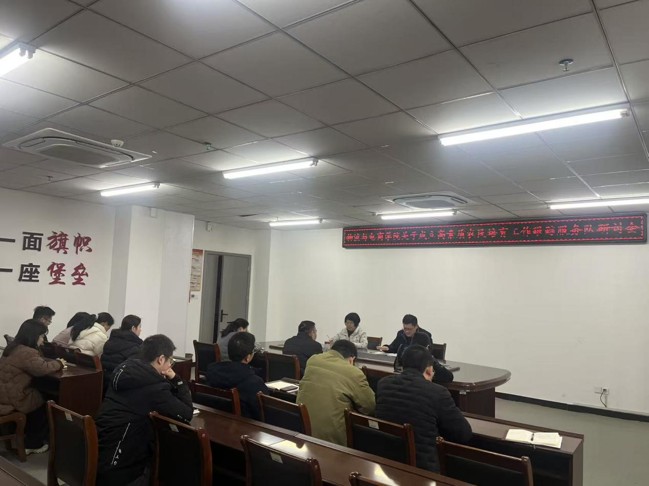 为深入贯彻落实2025年高素质农民培育工作精神,切实推动培育成果落地转化,3月2日,信阳农林学院物流与电商学院召开专题研讨会,研究成立2025年高素质农民培育工作跟踪服务团队。会议由副院长潘瑶主持,学院党委书记吴磊、院长潘一平及班子成员、培育服务团队骨干教师参加会议。