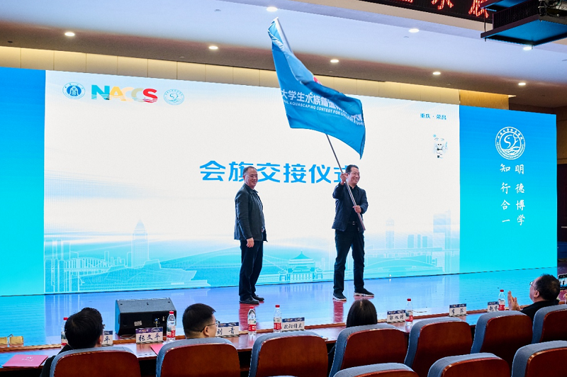 大赛闭幕式上,我校水产学院院长郭旭升作为下届比赛承办方代表,与本届承办单位西南大学进行了会旗交接,并向与会领导、老师和同学发出邀约,第十届全国大学生水族箱造景技能大赛将由我校承办。(撰稿摄影/水产学院 赵良杰)