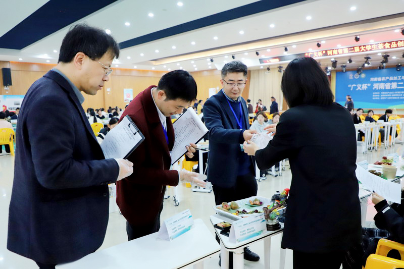 11月6日,由河南省农产品加工与贮藏工程学会主办,我校和信阳师范大学、大别山实验室、河南省大别山特色食物资源综合利用工程技术研究中心联合承办,信阳广义茶叶有限公司等协办的“广义杯”河南省第二届大学生茶食品创意设计大赛在我校举办。校党委委员、副校长易军鹏,河南省农产品加工与贮藏工程学会理事长吴坤、常务副理事长艾志录、监事长刘延奇、秘书长李梦琴,信阳广义茶叶有限公司董事长李广义,省内高校及食品领域的15名评审专家,以及食品科学与工程学院部分师生代表,部分企业负责人、参赛学生及指导教师参加了开幕式。开幕式由食品科学与工程学院院长李建芳主持。