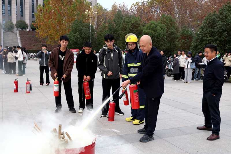 为切实增强师生消防安全意识,提升应急处置和自防自救能力,11月12日下午,我校在图书馆六楼举行消防安全月专题培训会,并在汝宁广场开展消防实操演练。党委宣传部、学生处、保卫处、校团委、各学院、各部门消防安全责任人及师生代表参加了此次活动,会议由保卫处处长张宇航主持。