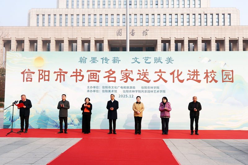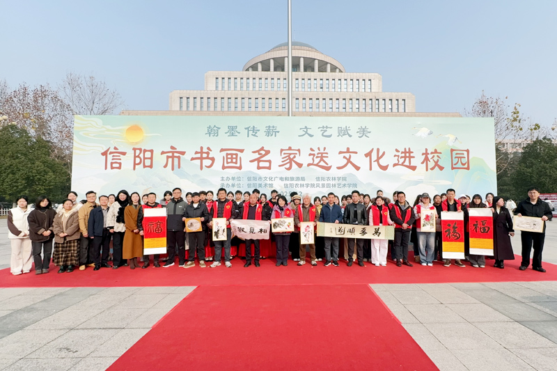 12月11日上午,由信阳市文化广电和旅游局与我校共同主办,信阳美术馆、风景园林艺术学院承办的“翰墨传薪 文艺赋美”——信阳市书画名家送文化志愿服务活动启动仪式在我校汝宁广场举行。