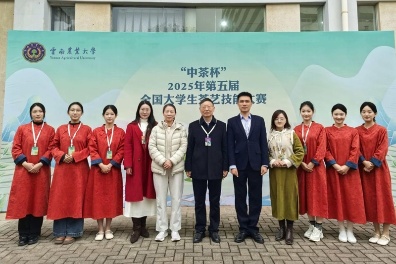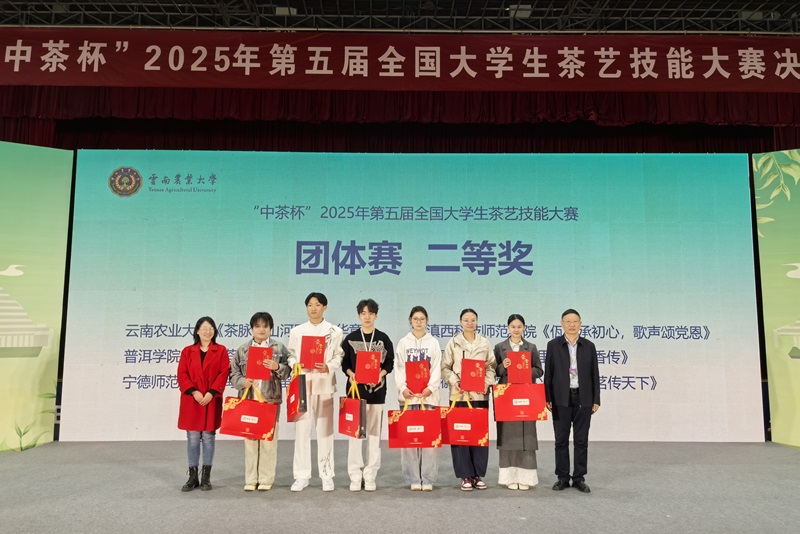 12月10日至12日,由高等学校国家级实验教学示范中心联席会主办,云南农业大学、云南中茶茶业有限公司承办的“中茶杯”2025年第五届全国大学生茶艺技能大赛在昆明举行。我校茶学院选派师生团队参赛,全国人大代表、茶学院教授郭桂义应邀担任大赛仲裁主任,茶学院教师王杉担任个人赛裁判。我校学生分别荣获茶艺技能个人赛一等奖三项,二等奖三项。
