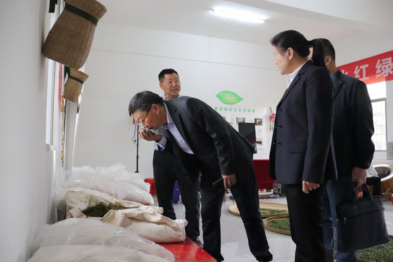 最后,郭桂义一行前往大悟县三里镇的湖北省大瑞毫茶业有限公司,考察大悟县不同企业的绿茶品质特征,通过与负责人及采茶工等人沟通,了解鲜叶行情、加工工艺,并就鲜叶管理、加工火功把控提出建议。郭桂义表示,作为全国人大代表、科技特派员,希望自己的知识、观点、技术、信息能够帮助茶产业及从业人员。(撰写/茶学院 王晶晶 摄影/张向娜 王晶晶)