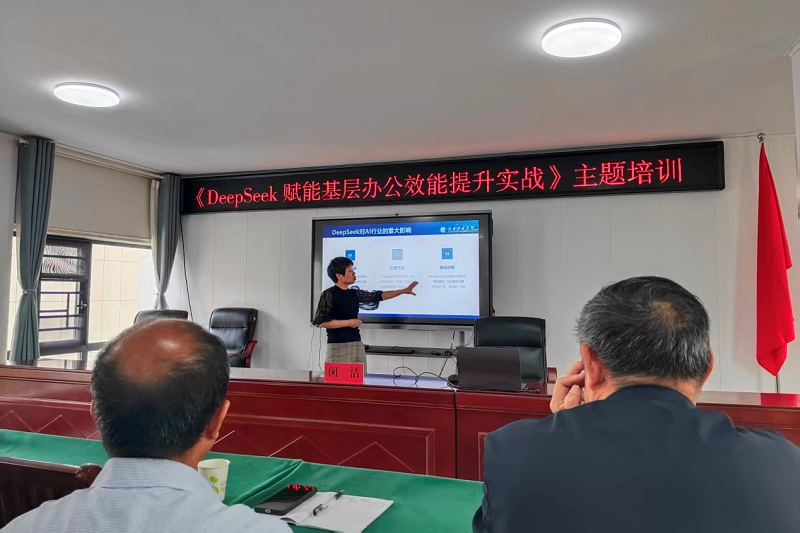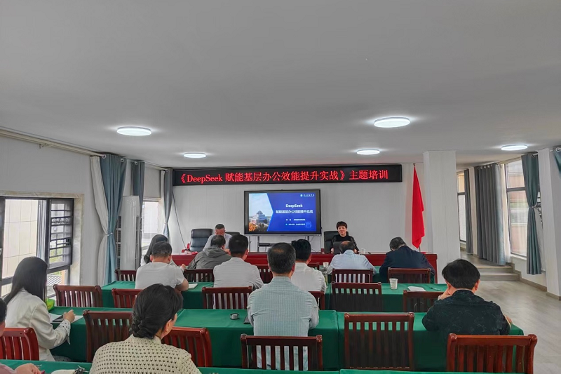 培训中,闵洁副教授围绕AI技术发展背景、关键概念、DeepSeek大模型原理及其在基层办公中的实际应用、未来趋势等方面,作了系统而深入的讲解。课程内容紧密结合前期调研中收集的实际需求,案例贴近基层、讲解通俗易懂,现场学员反响热烈。大家纷纷表示收获颇丰,将在今后工作中积极尝试、加强交流,真正把AI技术转化为提升效能的实用工具。
