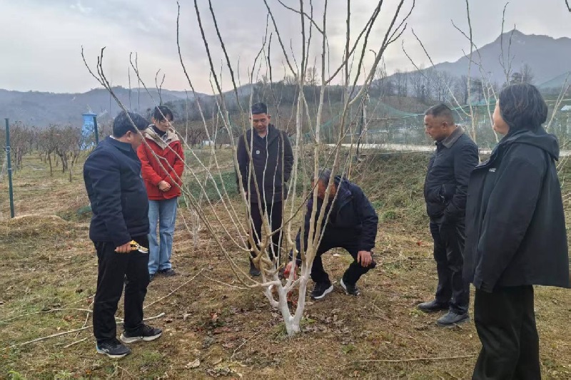 服务队一行在公司经理李昌春带领下,细致察看了桃、月季、柿等多种园艺作物的冬季生长状况。龚守富、范宏伟现场讲解示范桃树、桑葚、柿树等果树冬季修剪方法,强调修剪必须结合树龄树势,运用疏枝、拉枝等技术,重点去除病虫枝、徒长枝和过密枝,培育通风透光的丰产树体结构减少病害发生,提升果实品质。