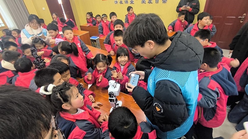 1月15日,信息工程学院志愿服务队与科技处一行,赴平桥区第七小学开展2026年度“科普进校园”活动。团队携信息工程学院学生自主研发的多款智能机器人,为小学生们带去一堂生动实用的科技普及课,点燃孩子们的科学梦想。