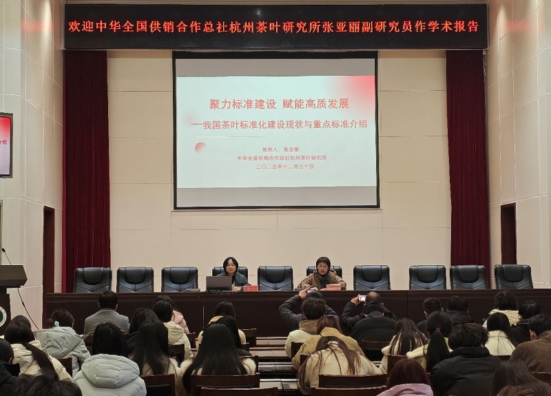 张亚丽的报告为我校茶学学科建设与服务地方茶产业升级提供了前瞻性的理论指导与实践方向。本次交流将进一步推动茶学院在标准研究、人才培养与社会服务方面的纵深发展,为信阳茶产业标准化注入新的学术动能。(撰稿摄影/茶学院 赵琛杰)
