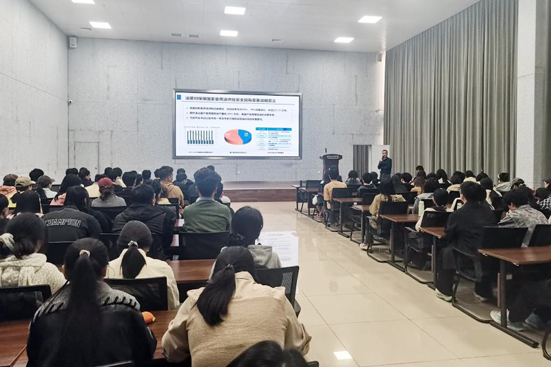 报告中,王道杰围绕油菜抗旱基因高通量鉴定及功能解析这一主题,从构建油菜转录因子应答非生物胁迫的调控网络、建立高效基因编辑技术体系等研究基础切入,围绕基因高通量克隆体系构建、五大转录因子家族基因编辑突变体库创建、抗逆相关基因功能解析及抗逆新种质创制等核心环节,进行了系统深入的讲解。报告内容兼具前沿性与系统性,为在场师生开展作物抗逆机制研究与遗传改良工作提供了重要参考。