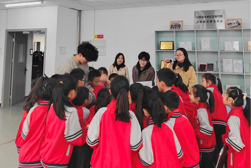 中心负责人、信息工程学院院长赵喜玲教授以“农业信息数智化”为主题开展科普讲座,随后引导师生走进信阳市农业信息数智化工程技术研究中心,沉浸式了解农业信息从采集、传输、处理到智能应用的全过程。