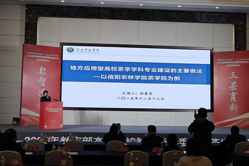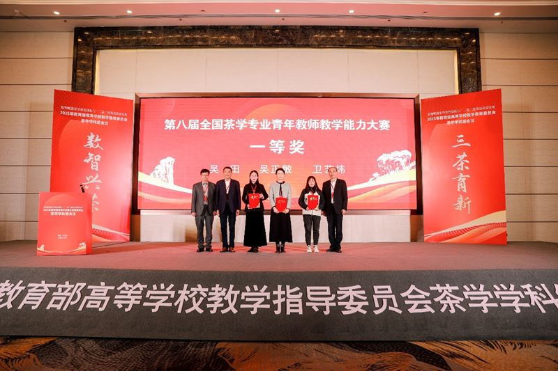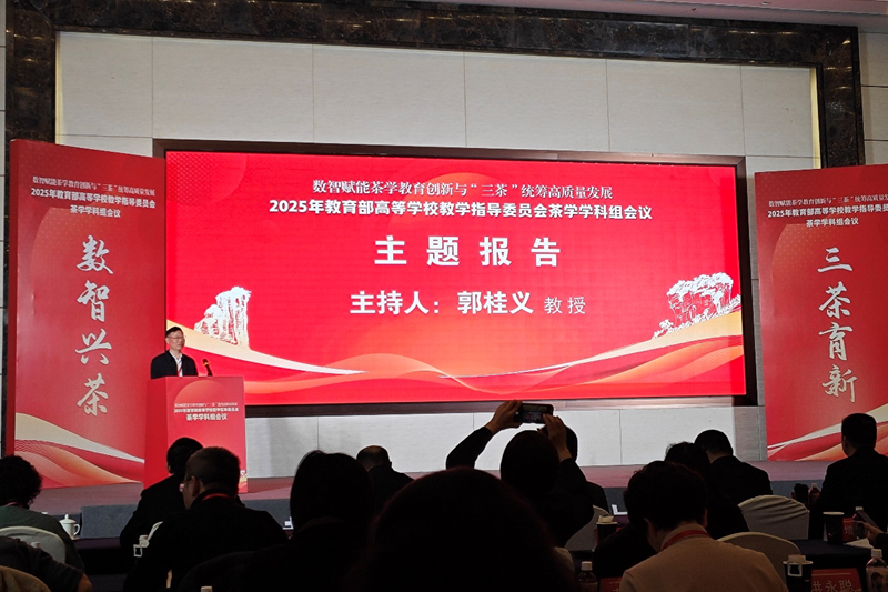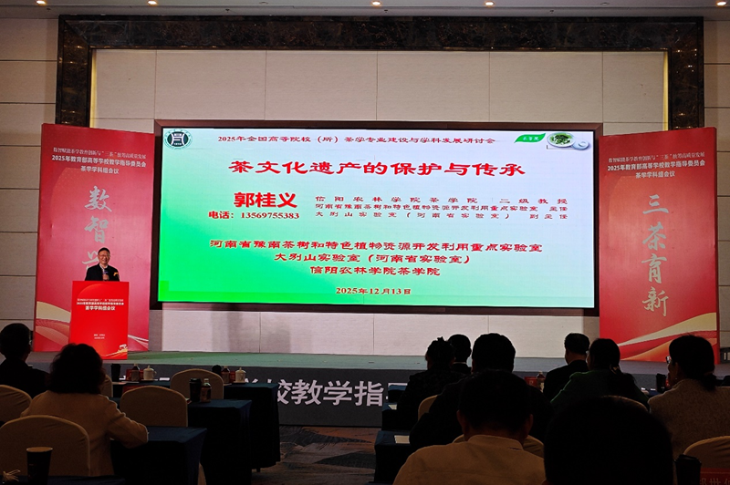 会议期间,茶学院积极参与学术交流,展现了学院的学科实力与办学特色。郭桂义应邀主持主题报告会,并作《茶文化遗产的保护与传承》专题报告,孙慕芳以《地方应用型高校茶学学科专业建设的主要做法——以信阳农林学院茶学院为例》为题,系统介绍了茶学院在应用型茶学人才培养、学科建设与服务地方产业发展方面的创新举措与成功经验。卫艺炜获得第八届全国茶学专业青年教师教学能力大赛一等奖,并上台接受颁奖。