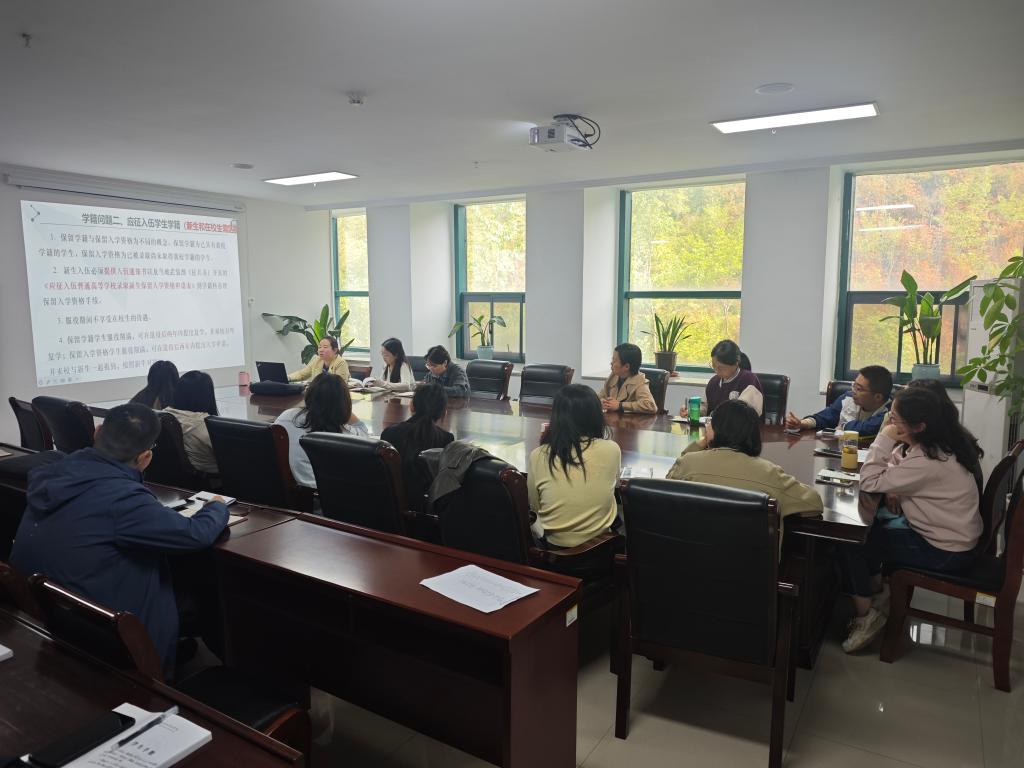 会后,李雯瑞副处长强调,学籍管理是学校教学管理体系的重要组成部分,直接关系学生切身利益与学校教学秩序稳定。学籍管理工作需以立德树人为根本遵循,以引导学生成长成才为核心目标,通过持续学习规章制度、优化管理流程,不断提升管理质量与服务效能,扎实推动我校学籍学历管理工作高质量发展。