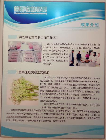 展会期间,在天中广场会展中心第五主展厅的“农产品加工业科技成果展示区”,我校的五块展板位置醒目,部分成果内容摘要和学校简介吸引观众驻足观看,相关介绍资料索者众多;这对大力宣传推介我校科研新成果与办学新成就,借力全国农洽会的大展台加强信息交流与校企合作具有重要意义;对助力我校加快向应用型技术大学转型发展,更好地为地方经济建设服务,同样具有良好地形象展示与成就宣传作用。(科技处:喻明达)