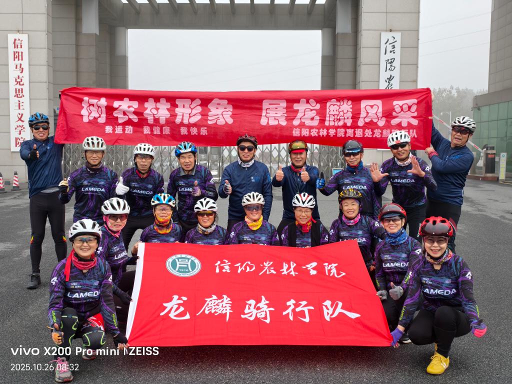 此次活动践行“我运动、我健康、我快乐”骑行理念,展现我校龙麟骑行队成员热爱生活昂扬向上的精神风貌。为即将来临的重阳节增添一抹充满活力的亮色。