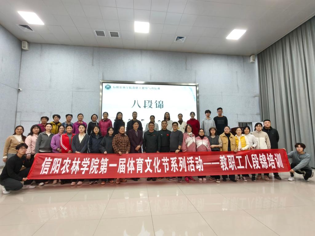 为深入贯彻落实全民健身国家战略,丰富校园文化体育生活,提升教职工身体素质。2025年11月11日,由我校体育学院牵头组织教职工“八段锦”培训活动在一餐三楼开展。我处离退休教职工董冰、韩秋玲等5人参加培训。