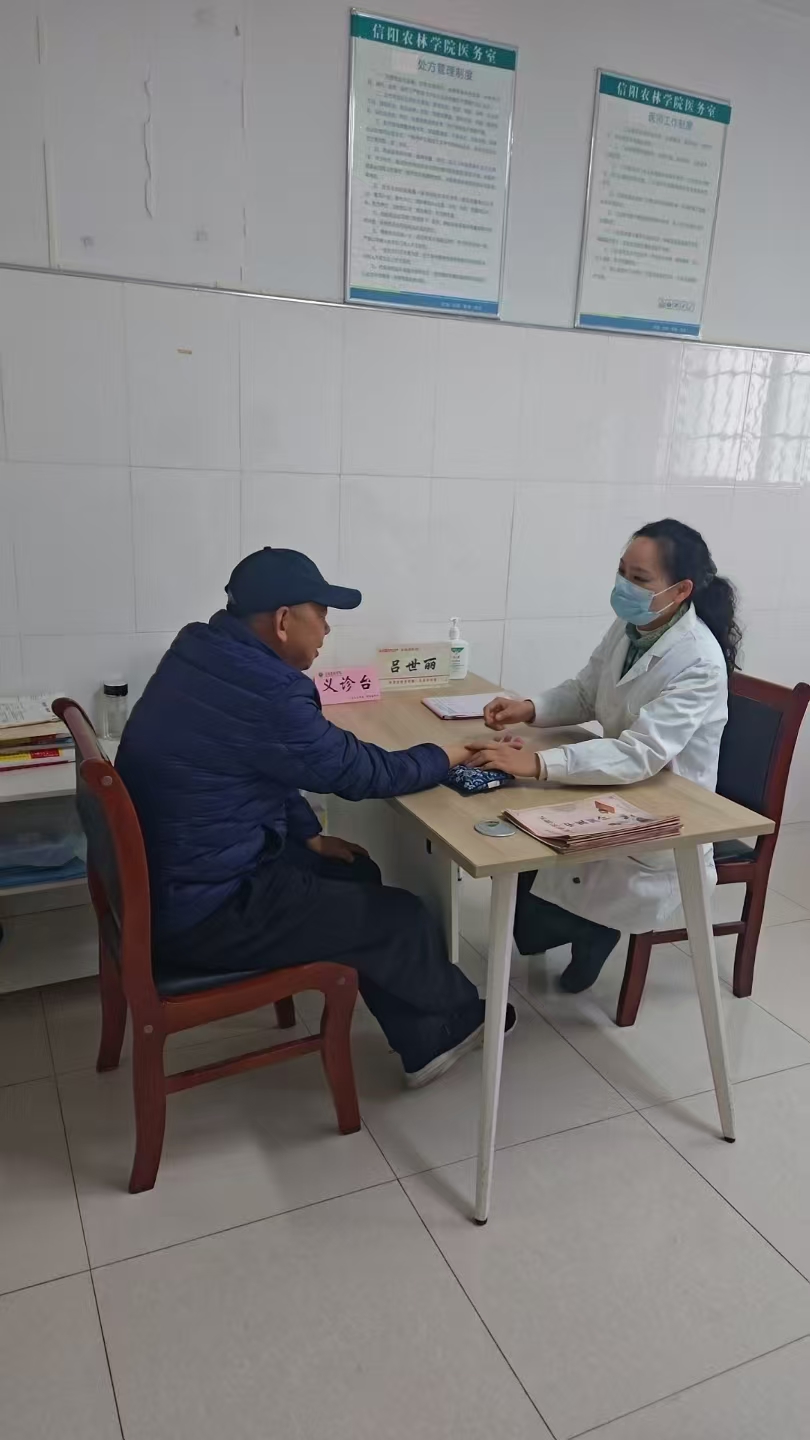 2025年11月27日,我校离退休工作处邀请高济药房中医专家吕世丽、赵炳梅等医师在校医院问诊室开展义诊活动。
