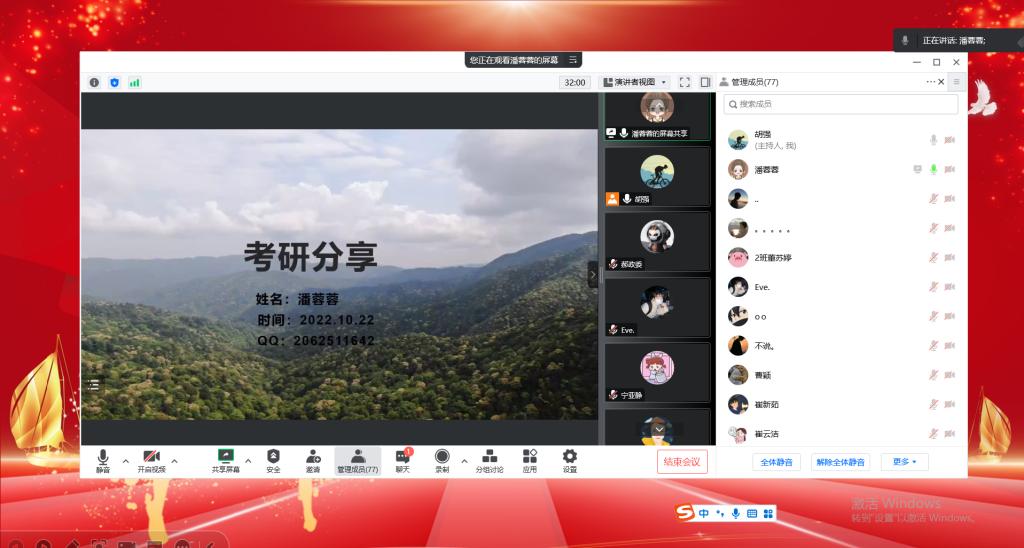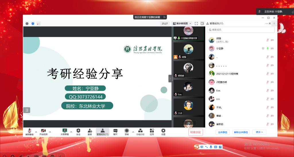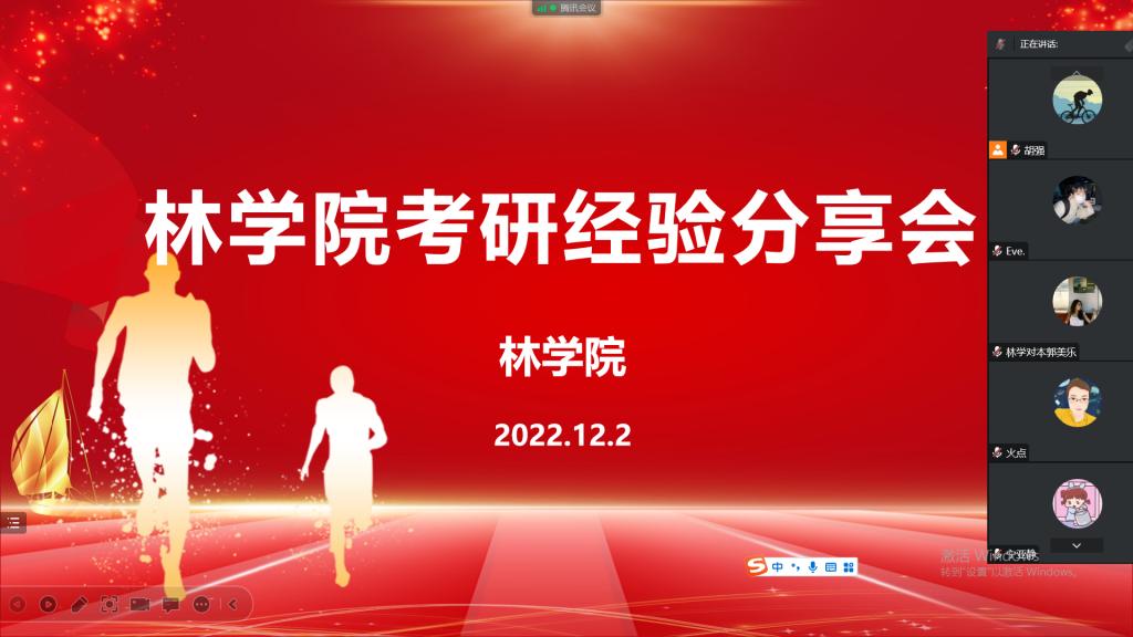 2023届考研临近,为缓解同学们的考研压力,林学院于2022年12月2日在线上举办了考研冲刺经验交流分享会,在最后关头为我院23届考研学子们分享冲刺复习应考经验和心理健康疏导。全院212名考研学生参加了本次会议。