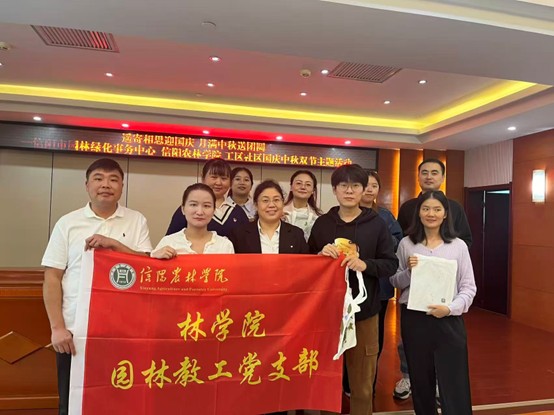喜迎国庆、欢度中秋。为弘扬中华优秀传统文化,厚植家国情怀,增进职工凝聚力,营造热烈浓厚的节日氛围,9月26日上午,信阳农林学院林学院园林教工党支部联合市园林绿化事务中心、工区社区党支部共同开展了“遥寄相思迎国庆·月满中秋庆团圆”庆双节活动。