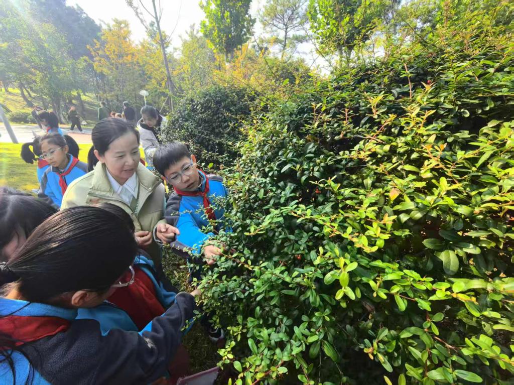 10月22日,信阳农林学院科技处联合信阳市第三实验小学,开展“探寻秋冬植物奥秘,感受自然生命韵律”研学活动。园林树木学课程团队全程提供专业支撑。课程团队以胡婷婷老师为带队核心,其余成员为陈冠霖、程传汇、马源、吴博宇、张成果等林学院学生,以生动精准的讲解,带领信阳市第三实验小学四、五年级学生走进植物世界,沉浸式感受秋冬生命韵律。