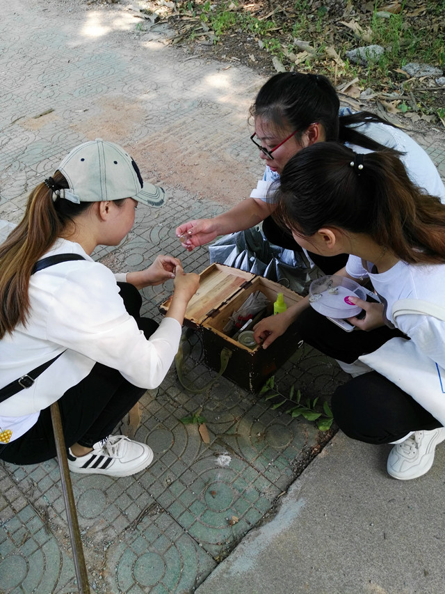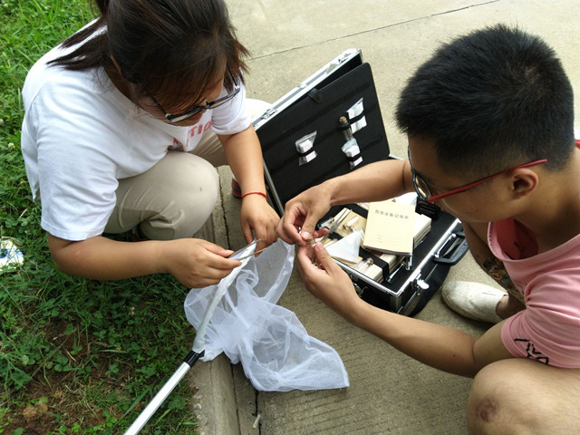 林学(经济林方向)2015级的同学们在魏岚老师的带领下,于6月19号开始《经济林病虫害防治》课程实习,6月20号上午结束实习。6月19号上午,老师讲解实习需注意的事项(安全问题重点)、领取实习用品,如何来进行病虫害标本的采集相关知识及操作,开始在学校内外进行病虫害标本的采集。下午在校内苗圃地进行病虫害防治措施的操作,老师讲解农药的相关知识,安全注意事项,针对不同防治对象,选择不同农药,采用相关施药技术。6月19号上午,在校外贤山林场进行病虫害标本的采集,在生物多样性的地方,昆虫也多样。下午整理标本、识别标本,进行实习考核,大多数同学都取得不错的成绩,如优秀的同学有:赵明辉、张环宇、孙亚豪等。
