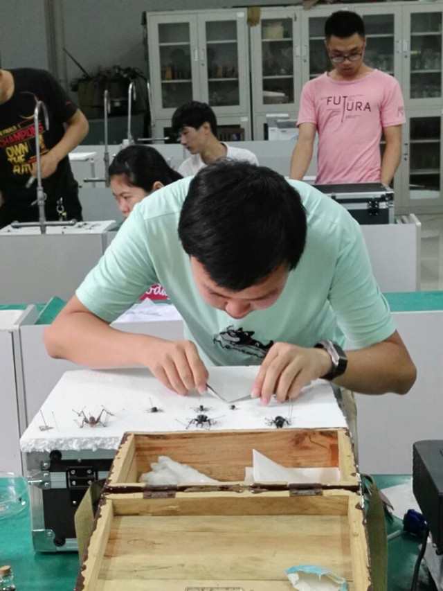 林业技术2016级同学在魏岚老师的带领下,于6月21号-6月22号开展了《林业有害生物控制技术》的课程实习。6月21号,集中学习实习注意事项(安全问题重点:防中暑、防蚊虫)和标本采集方法,随后领取实习用品在学校内进行病虫害标本的采集,晚上在实验室进行标本的整理。6月22号上午,在校外贤山林场进行病虫害标本的采集。下午整理标本、识别表本;进行实习考核,结合同学们实习采集的标本进行识别,进一步巩固实习成果。