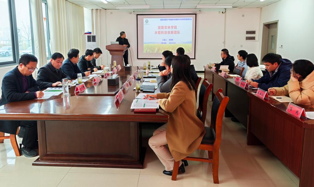 春潮涌动启新程,聚力攻坚促发展。为破解信阳优质水稻产业发展关键技术难题,推动校地融合、助力信阳水稻产业高质量发展,3月9日,我院召开信阳水稻生产关键技术问题研讨与协同创新座谈会。信阳市农业技术服务中心主任苏东,河南省水稻产业技术体系首席专家、信阳市农业科学院副院长扶定,信阳市农业农村局种植业与农业机械化管理科科长胡克光,信阳市农业农村局乡村产业与发展规划科科长贾晓迪,信阳市农业技术服务中心负责人王开斌,我校副校长雷振山,校科技处(社会合作处)副处长刘秋员、水稻科技创新团队全体人员参加会议。会议由院党委书记李传保主持。