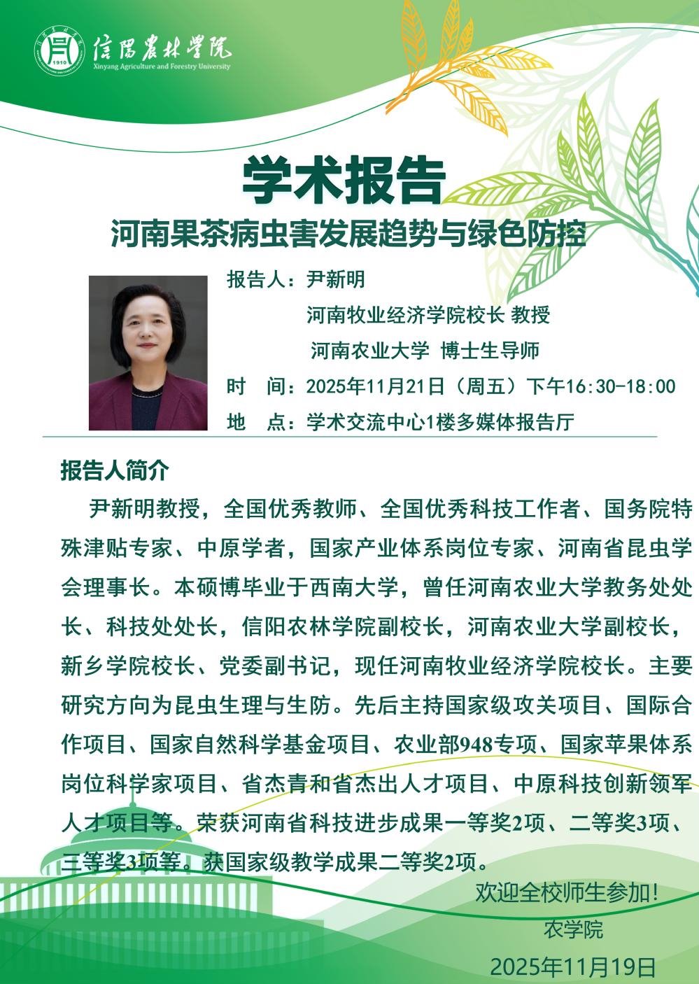 农学院第30期学术报告:河南果茶病虫害发展趋势与绿色防控