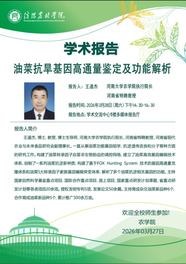 农学院第32期学术报告:油菜抗旱基因高通量鉴定及功能解析