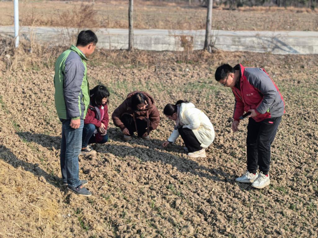 科技服务团一行走到田间地头,查看麦苗长势,依据不同田块麦苗长势分类指导。对于长势正常的壮苗麦田,重点在于控旺促壮,可适时进行镇压,抑制地上部分过快生长,促进根系发育,提高抗寒能力。对于群体不足或长势偏弱的麦田,应及时追施“偏心肥”,促进分蘖生长,确保合理群体。对于墒情不足的田块,在日均气温稳定在4℃以上的晴天中午,可进行节水灌溉,确保小麦安全越冬。同时,专家提醒相关负责人密切关注天气变化和病虫害发生动态,特别是小麦茎基腐病、根腐病及地下害虫等的监测与预防,结合实际情况进行药剂处理。