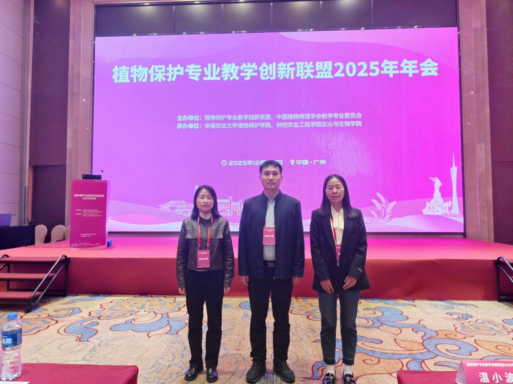 2025年12月5日至7日,植物保护专业教学创新联盟2025年年会在广州顺利召开。我院植保教研室耿书宝、乔利、张方梅3位教师参会,围绕植物保护专业人才培养与教学创新开展深入交流与学习。