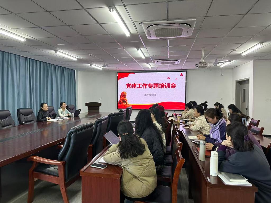 为进一步规范基层党组织建设,推动“三会一课”制度落实落细,提升学院党员发展质量,11月19日,旅游学院党委组织开展了党建工作专题培训会。学院党委副书记池水婧、专职组织员张音音、教工党支部和学生党支部全体支委委员参加会议,会议由池水婧主持。