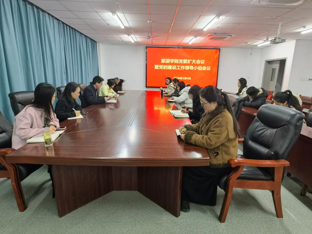 3月4日,旅游学院召开党委扩大会议暨党的建设工作领导小组会议,深入学习贯彻习近平总书记关于树立和践行正确政绩观的重要论述,传达学习中央党的建设工作领导小组会议、省委常委扩大会议暨省委党的建设工作领导小组会议精神和校党委扩大会议暨党的建设工作领导小组会议精神,部署开展树立和践行正确政绩观学习教育。学院党委书记朱长明主持会议并讲话,学院领导班子成员、各党支部书记、科级干部参加会议。