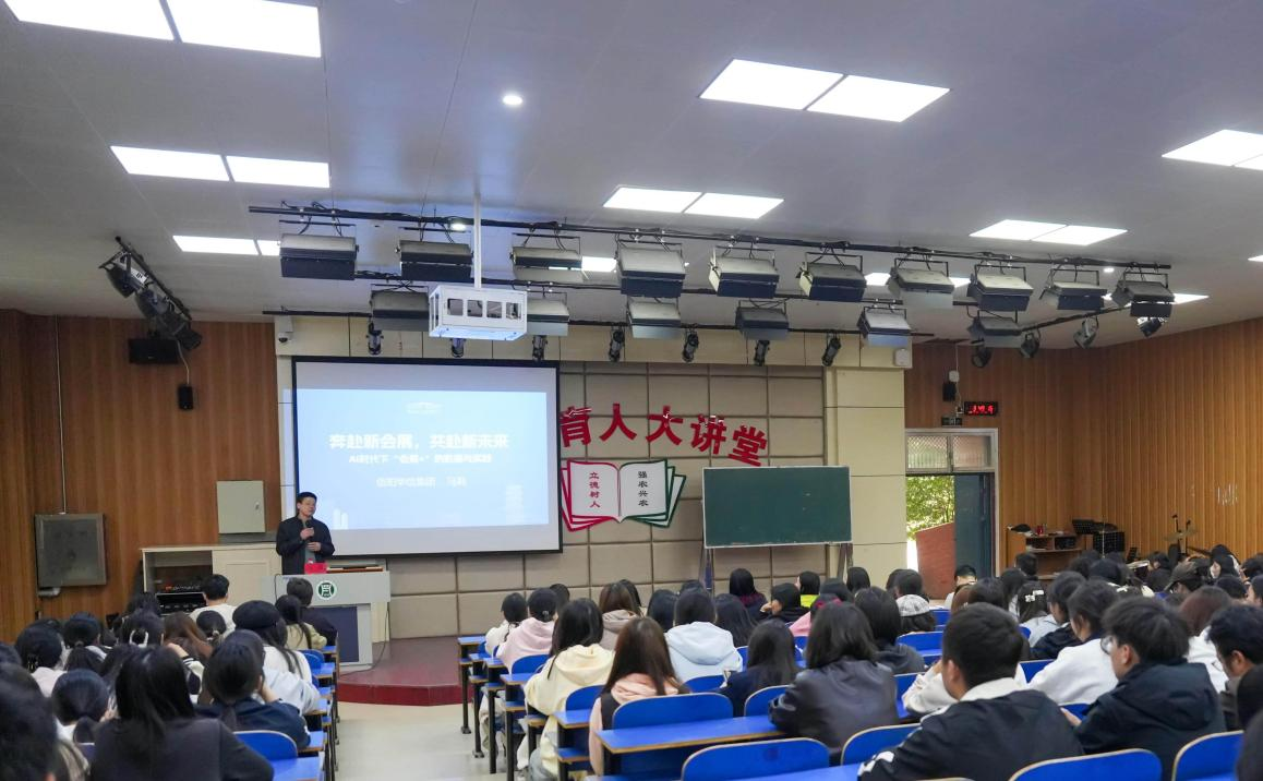 为进一步增强学生专业认知,明确专业学习方向与职业成长路径,10月31日下午,旅游学院邀请信阳建投投资集团副总经理、市百花运营公司党支部书记、执行董事马莉,在一教E101开展“奔赴新会展共赴新未来——AI时代下‘会展+’的机遇与实践”专题讲座,讲座由旅游学院党委书记朱长明主持、学院部分专业教师和2025级会展经济与管理、旅游管理及酒店管理本科专业学生参加。