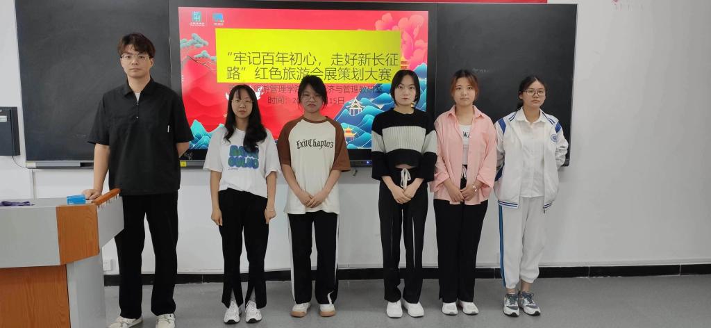 为进一步提升学生对于红色旅游路线与产品规划开发兴趣,激发创新创造活力,旅游管理学院会展经济与管理教研室于2023年5月15日—21日,分别在双创楼与教学楼举行了三场“牢记百年初心,走好新长征路”——红色旅游会展策划大赛。此次大赛由宋宇和周诗涛指导,会展教研室部分教师担任评委,此次活动共有十组参赛队伍。