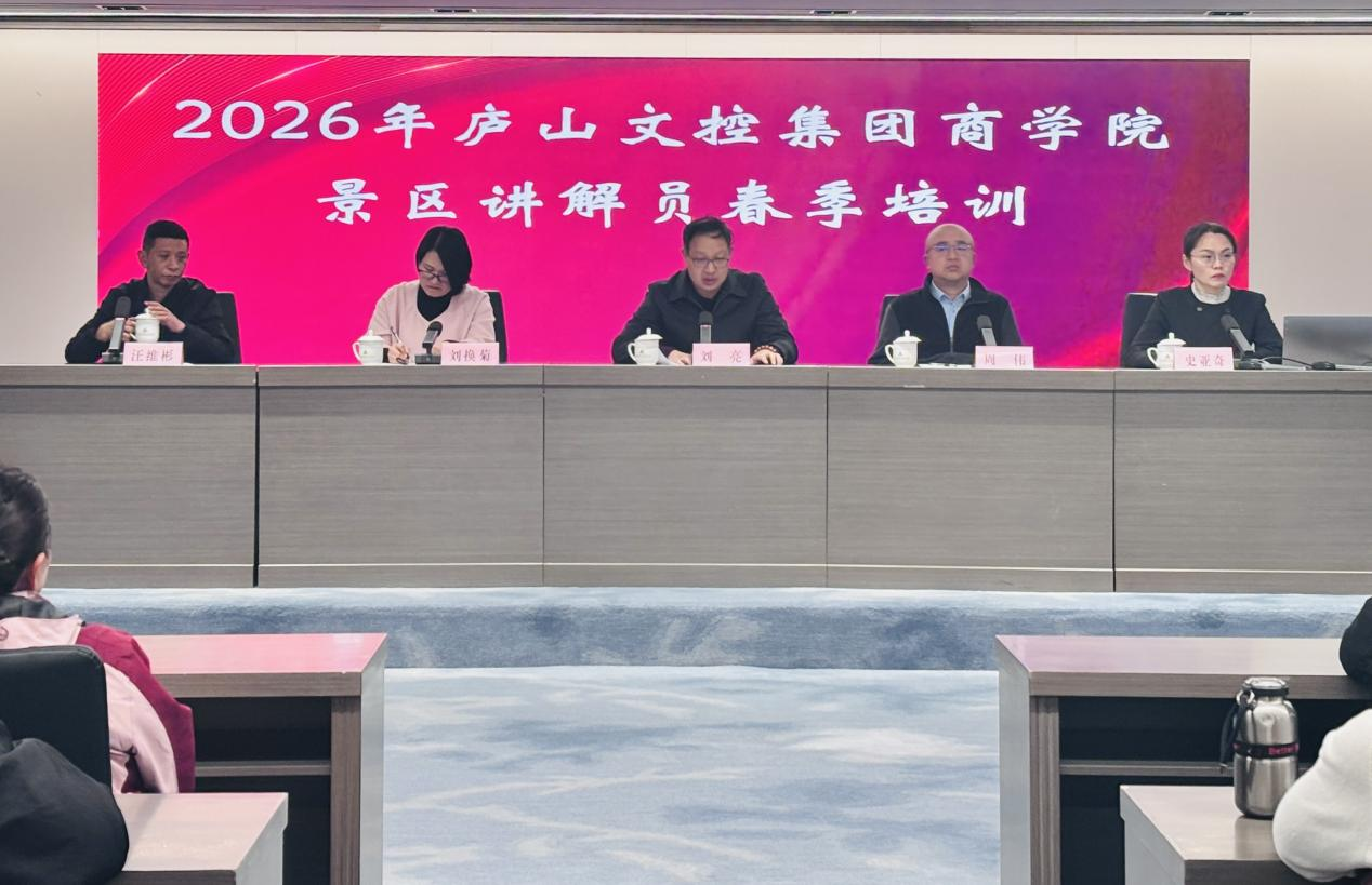 为深入贯彻文旅行业高质量发展要求,着力提升庐山景区导游服务质量,锻造高素质讲解员队伍,弘扬工匠精神,增强景区文旅发展活力,2026年4月14日,庐山文控集团商学院举办景区讲解员春季培训活动。我校旅游学院教师史亚奇受邀主讲,开展主题为“淬匠心展风华——导游服务礼仪与专业知识精讲”的专题培训,助力景区讲解员提升专业素养、规范服务能力。