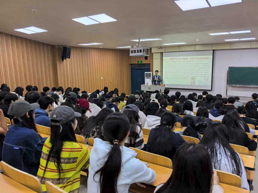 为引导青年学子筑牢信仰之基,扣好大学生涯的“第一粒扣子”,9月15日晚,旅游学院党委书记朱长明以“传承和弘扬伟大抗战精神,从伟大胜利中汲取奋勇前进的力量”为题,为2025级新生上了一堂深刻而富有意义的入学思想政治教育课。