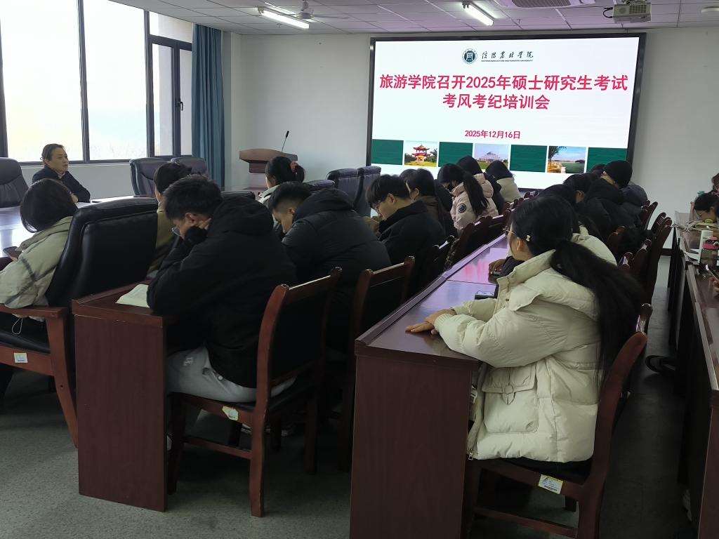 随着2025年全国硕士研究生招生考试临近,为营造公平、公正的考试环境,强化学生的诚信意识与纪律观念,旅游学院于12月16日在双创310召开2025年硕士研究生考试考风考纪教育培训会。副书记池水婧及即将步入考场的考研学子参加了本次大会。