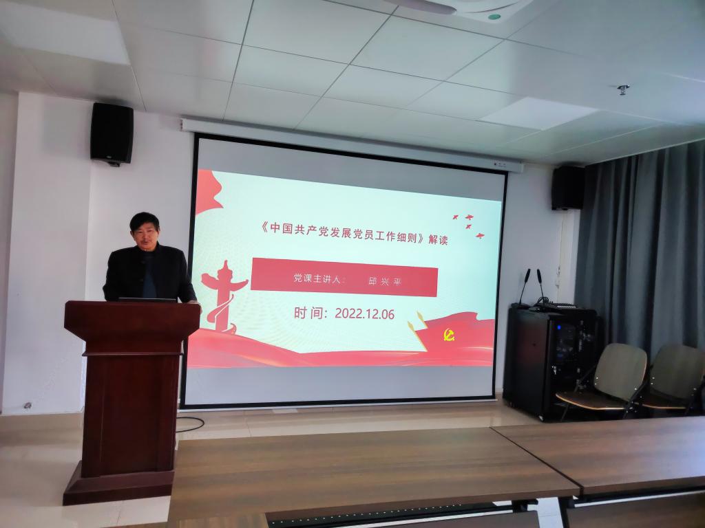 12月6日下午,马克思主义学院党总支书记、院长邱兴平在学术交流中心509会议室,对《中国共产党发展党员工作细则》(以下简称“《细则》”)进行详细解读,为全体党员上了一堂内容丰富、立意深远的主题党课。