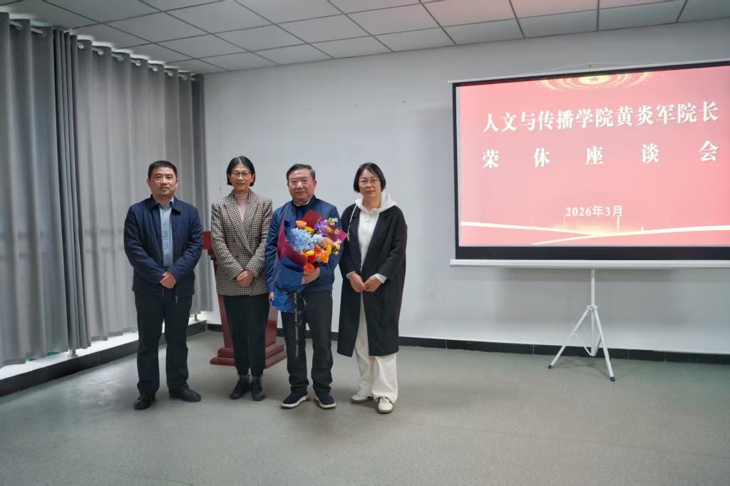 3月24日下午,人文与传播学院在416会议室为前院长黄炎军同志举行荣休座谈会,校党委副书记王万玲、院党委书记李华清、院长张立恒及全体教职工参加,共同回顾黄炎军院长三十九载工作历程,表达对这位学院奠基人的崇高敬意与诚挚祝福。
