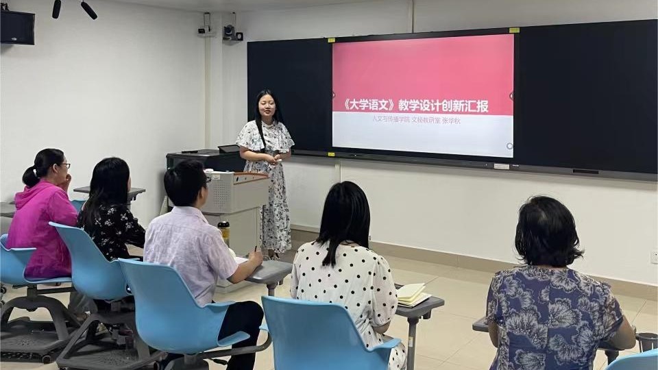 比赛过程中,张华秋老师结合其所教授的《大学语文》课程,从课程概述、课程痛点、创新途径与创新成效四个方面出发,进行了15分钟的教学设计创新汇报,提出“学生中心、思政融合、持续改进、注重过程”的创新思路,精心设计课程内容、过程方法与考评反馈各教学环节,重点突出课堂教学的设计思路、理论依据及创新之处。