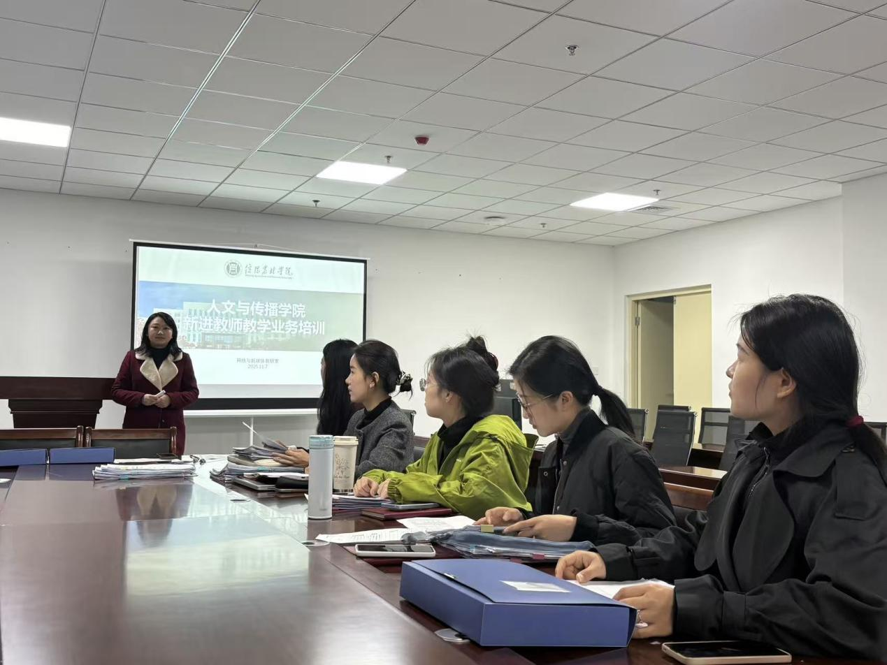 为深入贯彻落实习近平总书记关于教育的重要论述精神,紧扣立德树人根本任务。人文与传播学院于2025年11月7日举办了2025年新进教师教学业务专题培训。本次培训旨在夯实新教师教学基本功,规范教学环节管理,全面提升教书育人能力与个人综合素质。学院相关负责同志和全体新入职教师参加了本次培训。